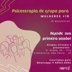 Com a direção de Isabela Almeida e Daniella Kassia, o objetivo do grupo é em 12 encontros, proporcionar um espaço terapêutico para para mulheres acima de 18 anos que buscam se fortalecerem, desenvolverem autoestima e empoderamento.