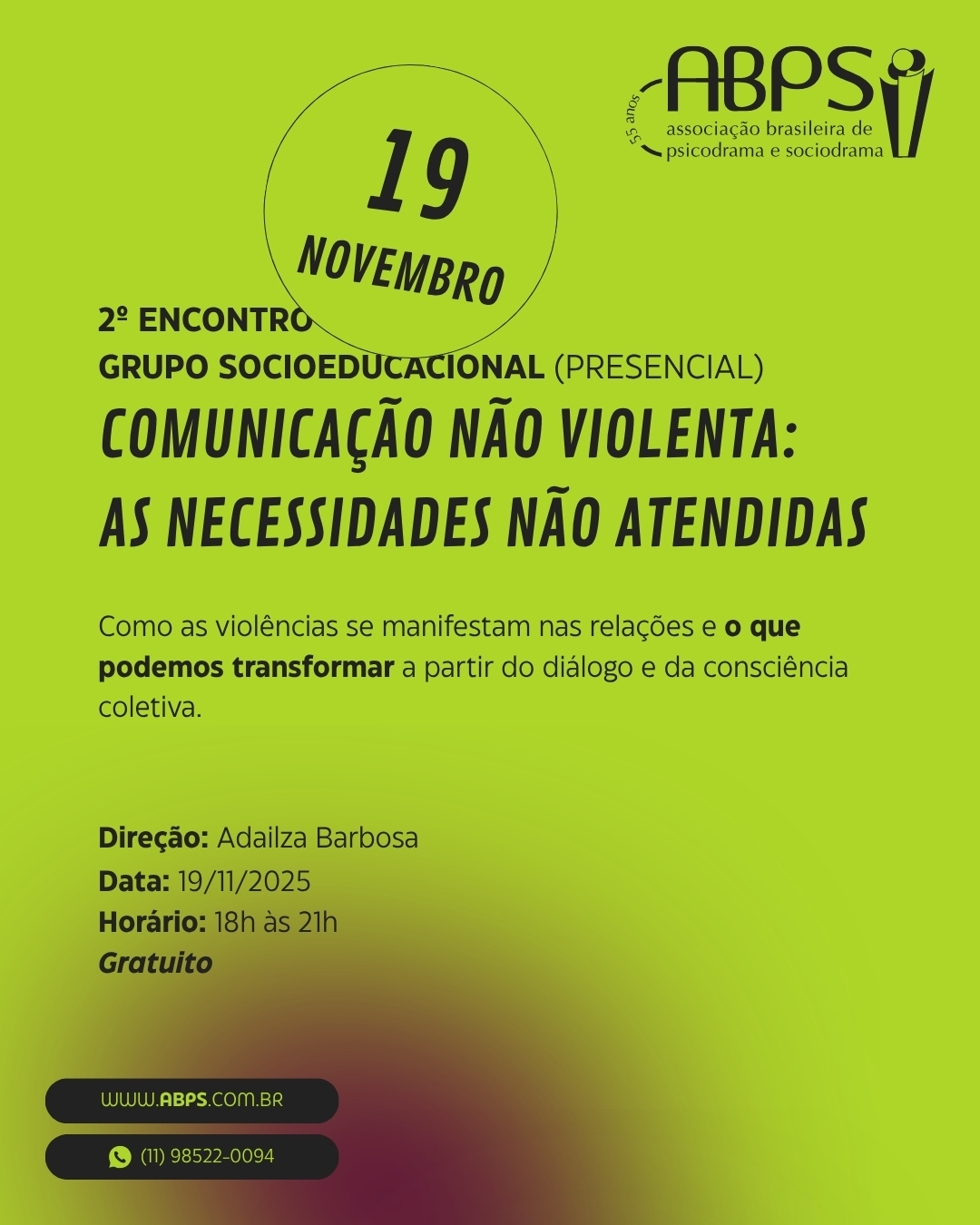 19/11 Grupo Socioeducacional - Comunicação Não Violenta: As Necessidades Não Atendidas (Trilogia de Encontros sobre Convivência e Relações)