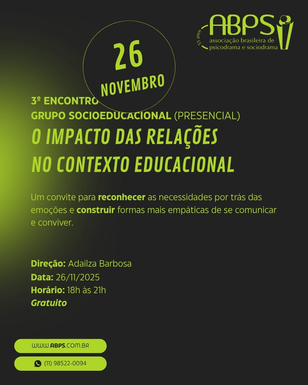📅 26/11 – O Impacto das Relações no Contexto Educacional
