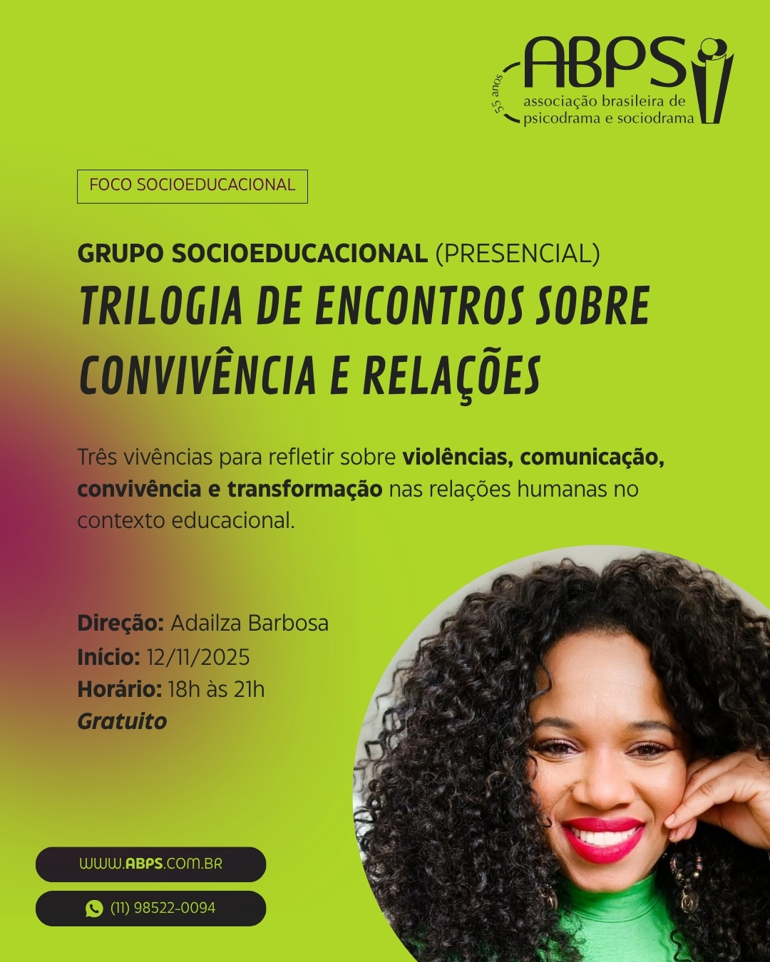 Ao longo de três vivências sequenciais, conduzidas por Adailza Barbosa, psicodramatista, educadora e pós-graduada pela ABPS, serão explorados temas fundamentais para a construção de ambientes mais empáticos, colaborativos e saudáveis.